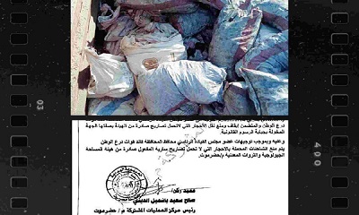 وجاءت هذه الخطوة بتوجيهات من القائم بأعمال رئيس شعبة الاستخبارات العسكرية، حيث تم التحفظ على الشاحنة وتوقيف السائق، وإبلاغ الجهات المعنية المتمثلة في هيئة المساحة الجيولوجية والثروات المعدنية فرع حضرموت للإفادة عن محتويات الشحنة.