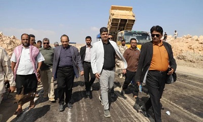 واطلع محافظ حضرموت على أعمال السفلتة والرصف الجارية بطريق “ربوة خلف – المعاوص” البالغ نسبة الانجاز فيه 94% وتبلغ كلفته مليون و100 ألف دولار بتمويل من السلطة المحلية بالمحافظة وتنفذه مؤسسة “مدرار” للمقاولات.